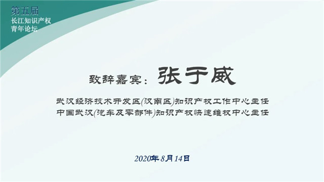 (通讯员:林周)2020年8月14日,第五届长江知识产权青年论坛(以下简称论坛)在“腾讯会议”平台隆重召开。论坛由雷竞技电竞平台官网、武汉知识产权研究会、武汉经济技术开发区(汉南区)知识产权工作中心、中国武汉(汽车及零部件)知识产权快速维权中心、武汉市市场监督管理局(市知识产权局)联合主办,由雷竞技电竞平台官网、武汉市知识产权服务协会联合承办。