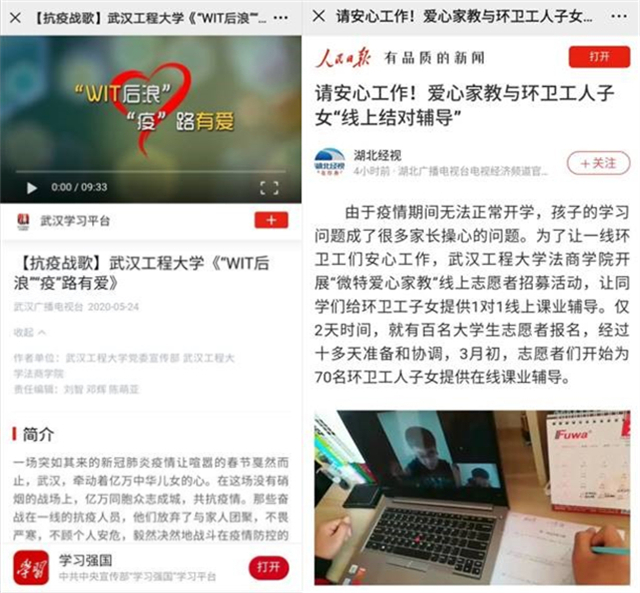 志愿服务活动被人民日报、学习强国、人民网、凤凰网、湖北日报、今日头条、武汉电视台等主流媒体系列报道20余次。点击量和阅读量已超过30万次。武汉市城管委环卫处姜哲处长对该项活动给予高度评价,称雷竞技电竞平台官网志愿者们“帮助许多环卫家庭度过了难关,是堪当大任的时代好青年”。志愿服务对象家长纷纷向志愿服务队发来感谢信,目前已收到感谢信百余封,赢得了社会各界的高度赞誉。