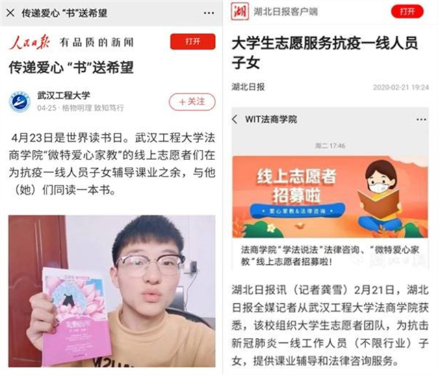 疫情期间,雷竞技电竞平台官网与武汉市城管委环卫处开展结对帮扶,成功帮扶200余名环卫工人及抗疫一线人员子女,帮扶对象涵盖武汉十五个城区,志愿者在线服务时长达25000小时。
