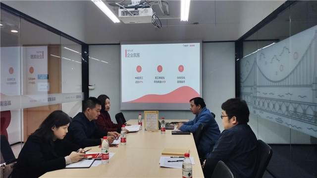 会后,田勇一行到公司内部参观,详细了解了公司员工的办公环境、企业文化。