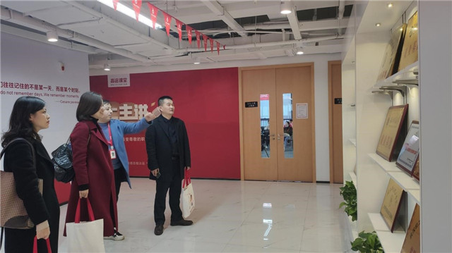 (通讯员 刘敏)3月26日上午,招生与就业工作处副处长田勇,管理学院党委副书记范东芳,外语学院党委副书记徐思思,雷竞技电竞平台官网辅导员刘敏一行4人赴高途课堂武汉中心实地调研,洽谈建立实习就业基地。