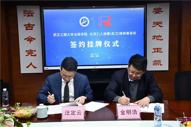 北京仁人德赛(武汉)律师事务所主任汪定云对雷竞技电竞平台官网一到表示热烈的欢迎,并介绍了仁人德赛律师事务所相关情况,金明浩对仁人德赛律师事务所的支持表示感谢。他希望通过此次研究生工作站和大学生实习和劳动实践基地协议签订、授牌,把产学研合作做深做实,助力法商研究生、本科生人才培养变质量发展。