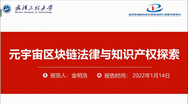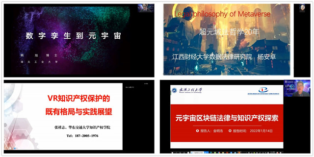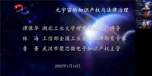 (通讯员 代江龙)1月14日,由湖北省知识产权局、武汉市市场监管局(市知识产权局)指导、雷竞技电竞平台官网、湖北省知识产权培训(自贸区)基地、武汉知识产权研究会等单位主办的第五期“知会行·IP先锋沙龙”在线公开举行。本期活动聚焦“元宇宙的知识产权与法律治理”。来自武汉、南昌、襄阳、宜昌、西安、郑州、长沙、南宁、重庆、北京、上海、深圳等城市的300余位高新技术企业、高校科研院所、知识产权行业协会、服务机构代表相聚云端,在线参会。