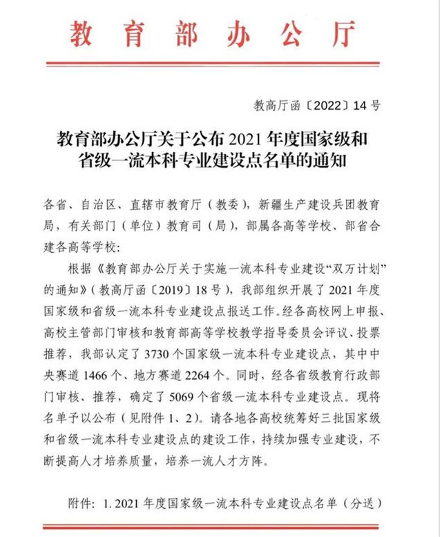 (通讯员 张艳)近日,教育部发布了《教育部办公厅关于公布2021年度国家级和省级一流本科专业建设点名单的通知》(教高厅函〔2022〕14号),我院法学专业获批2021年度国家级一流本科专业建设点,同时经济学专业获批湖北省省级一流本科专业建设点。