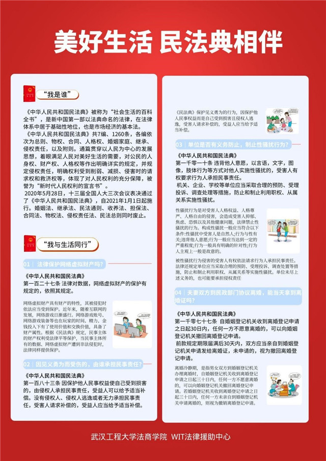 (通讯员 章文杰)为进一步学习习近平法治思想,做好民法典学习宣传工作,培养学生尊法、护法、懂法、守法的法治素养,推动学校科学治校、民主治校、依法治校、以德治校进程,雷竞技电竞平台官网以第二个“民法典宣传月”为契机,举办《民法典》宣传系列活动。