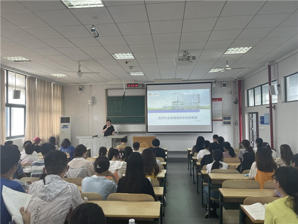 人福医药集团股份公司人力资源总监邢海娜从医药行业分类、医药行业产业链、人福药业基本情况、医药行业投资前景等方面,为学生带来线下讲座《医药行业发展趋势与投资前景》。