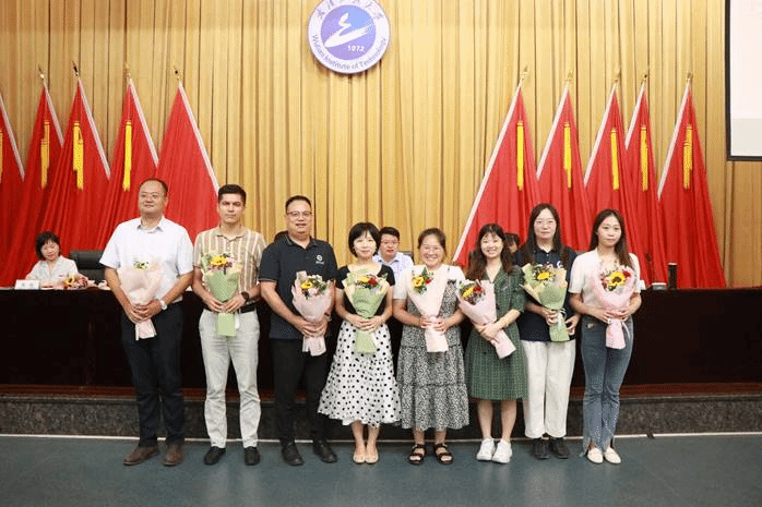 正值第39个教师节之际,典礼最后新生代表为向教师代表赠送鲜花,祝福老师们教师节快乐。