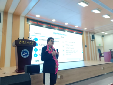 在综合楼102多功能报告厅举行的讲座中,悉尼科技大学法学院教学副院长Maxine Evers副教授作了题为Legal Tech, Legal Education and the Profession(《法律技术、法律教育和职业》)的报告。Maxine从法律从业的知识和技能体系入手,探讨法律教育内涵和法律就业方向,与在场师生共同探讨技术创新给法律教育和职业发展带来的挑战与机遇,并分享了悉尼科技大学法律专业的应对措施和相关项目。
