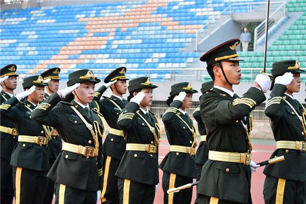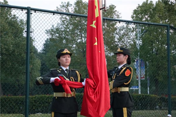 早上7点,迎着清晨第一缕阳光,在雄壮庄严的国歌声中鲜艳的五星红旗冉冉升起,全体师生肃然静立、凝眸注视、共唱国歌。