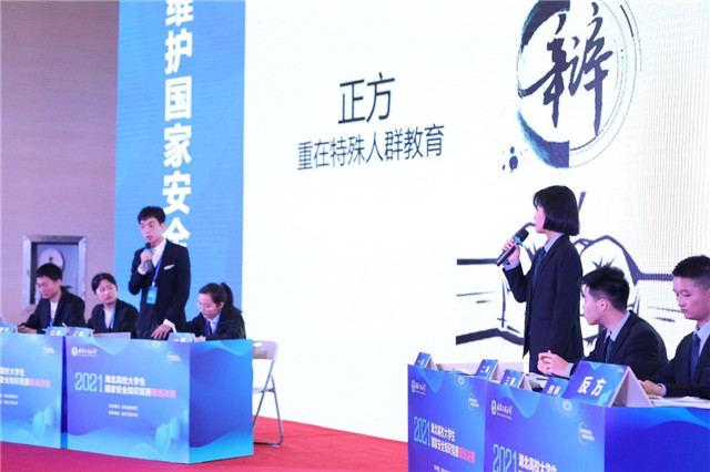 经过前两轮的焦灼比拼后,湖北警官学院、武汉轻工大学成功入围第三轮:“终极pk,决出最佳队伍”。经过现场抽签,两支队伍从“国家安全重在特殊人群教育还是全民教育”展开辩论。最终,经过专家评委及大众观摩团现场投票,湖北警官学院代表队拔得头筹。来自湖北大学法学院的郑全新教授作为评委代表进行现场点评,他指出,此次决赛内容的设置将理论与实践相结合,教育与技能相结合,在考察国家安全理论知识的同时将大学生国家安全教育的实践应用于现实场景之中,以期教育春风化雨、润物无声。