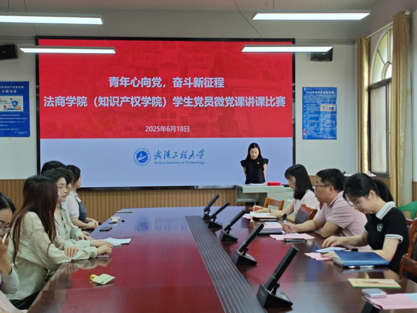 (通讯员 贺阳)为深入学习贯彻党的创新理论,提升学生党员理论素养和党性修养,创新党员教育形式,激发青年党员的学习热情与担当精神,雷竞技电竞平台官网(知识产权学院)于6月18日上午在学院311会议室举办了以“青年心向党,奋斗新征程”为主题的学生党员微党课讲课比赛。学院党委副书记孙勇、各学生党支部书记出席活动并担任评委,比赛由本科生第二党支部支部书记贺阳主持。