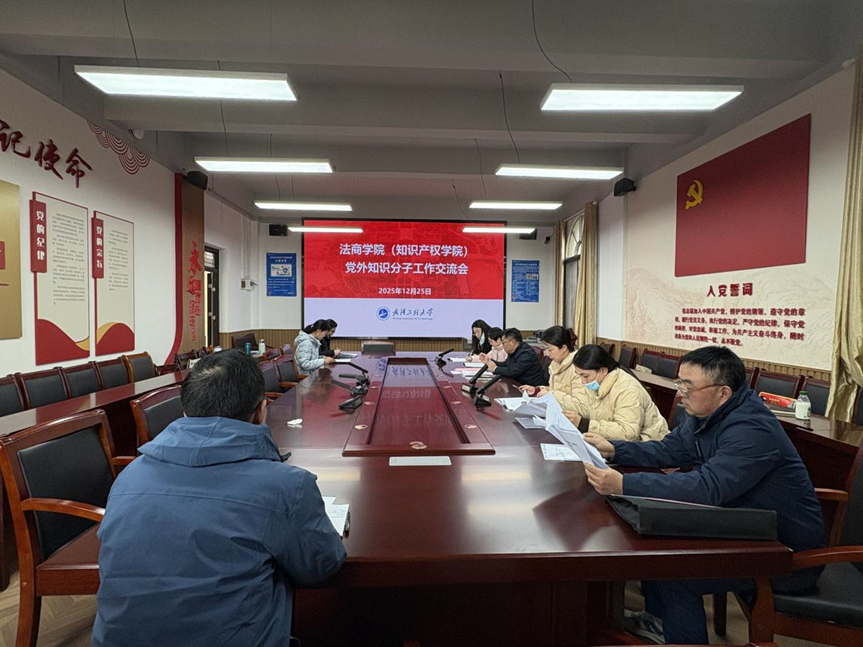 (通讯员 石原昊 贺阳)为深入学习贯彻党的二十届四中全会精神和习近平总书记关于做好新时代党的统一战线工作的重要思想,进一步加强学院与党外知识分子的联系沟通,凝聚发展合力,12月25日下午,学院在311会议室召开党外知识分子工作交流会。学院党委副书记孙勇、知识产权教研室党支部书记李树训和全体党外知识分子参加会议。